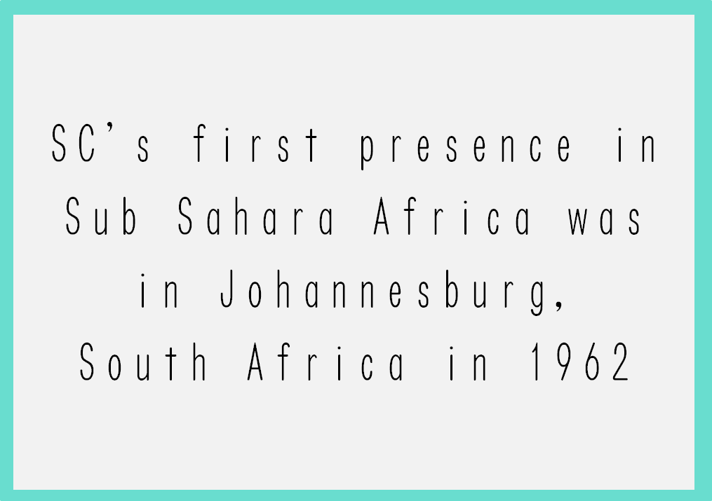 SC's first presence in Sub Sahara Africa was in Johannesburg, South Africa in 1962