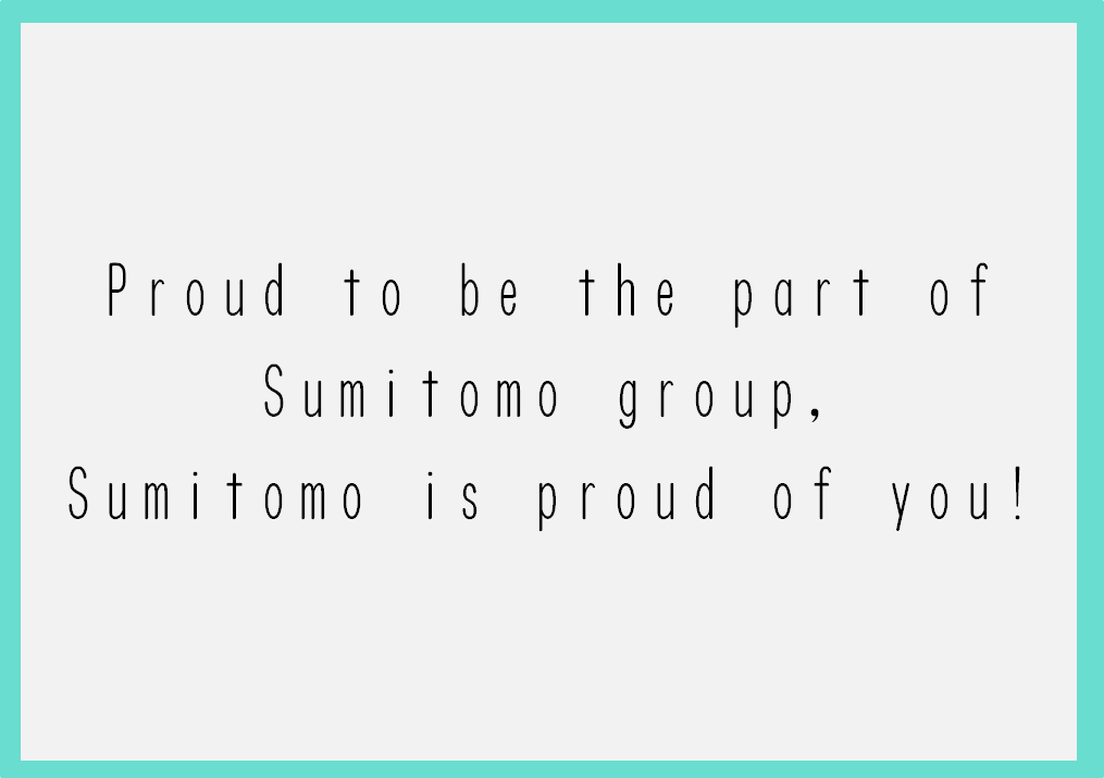 Proud to be the part of Sumitomo group, Sumitomo is proud of you!
