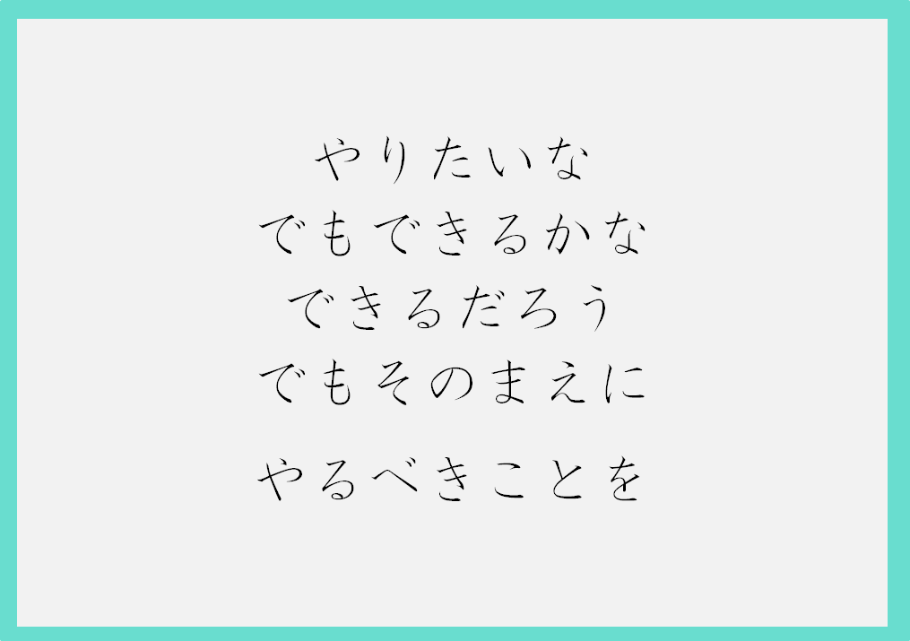 やりたいな でもできるかな できるだろう でもそのまえに やるべきことを