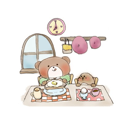絵描きのくまとモグラの楽しい朝のひとときです。