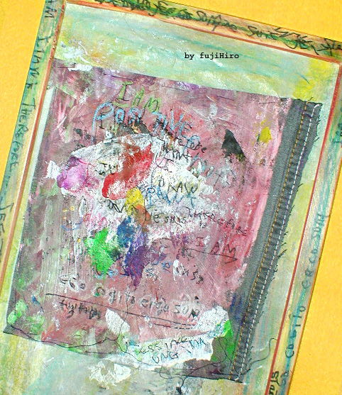 半紙/デニム裾/アクリル/クレヨン/ペン/糸