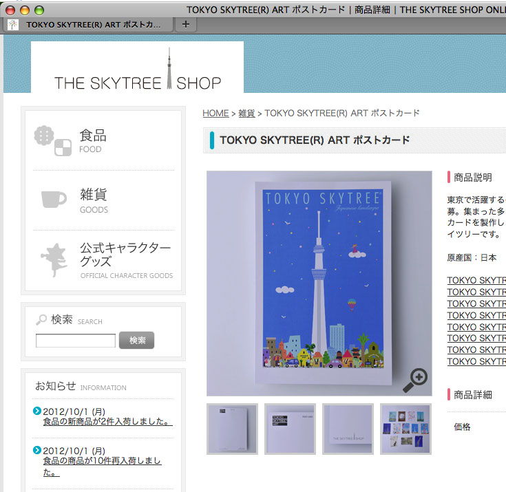 東京スカイツリーグッズネット販売開始。2012年版