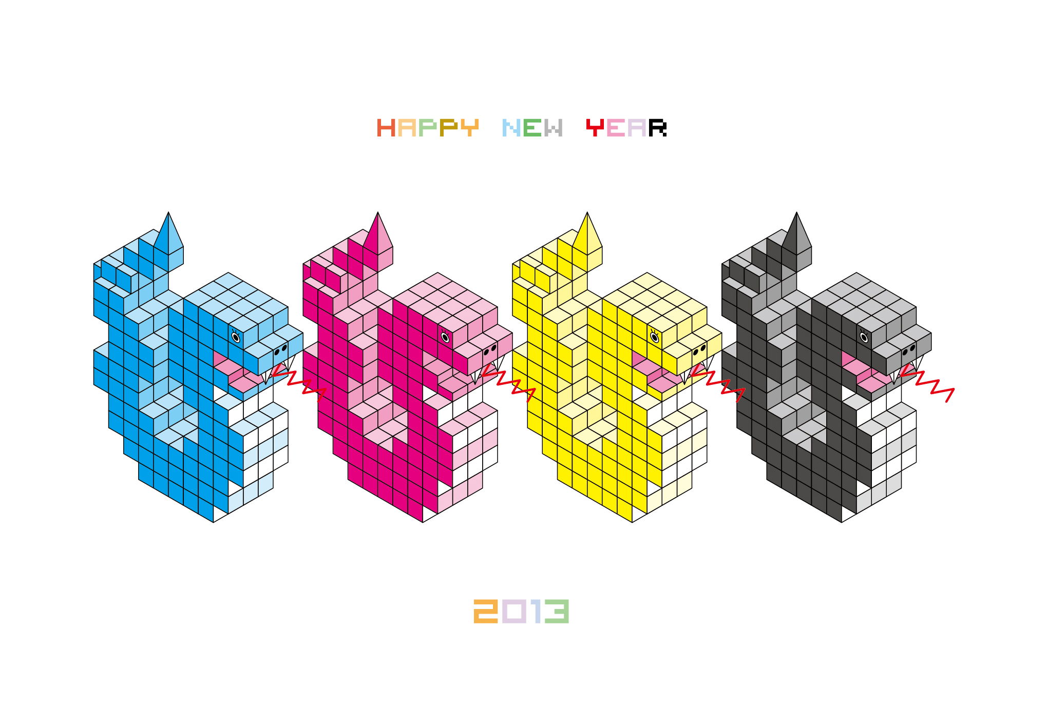 四色へび年賀状