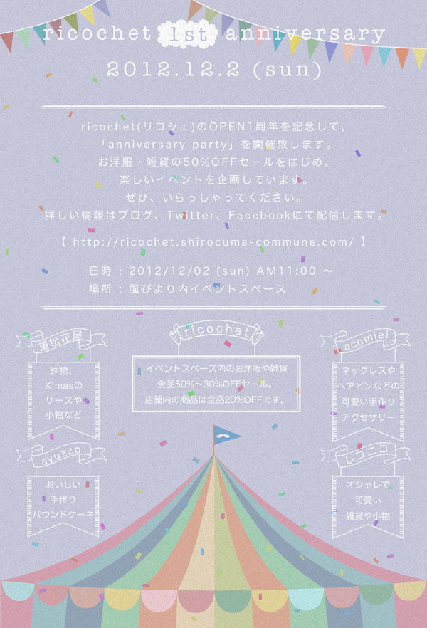 ショップの1周年を記念したイベント当日にお配りした名刺サイズのカードになります。
