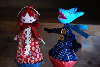 棒を回すと踊る人形たち。今回は、昭和の布で登場です。