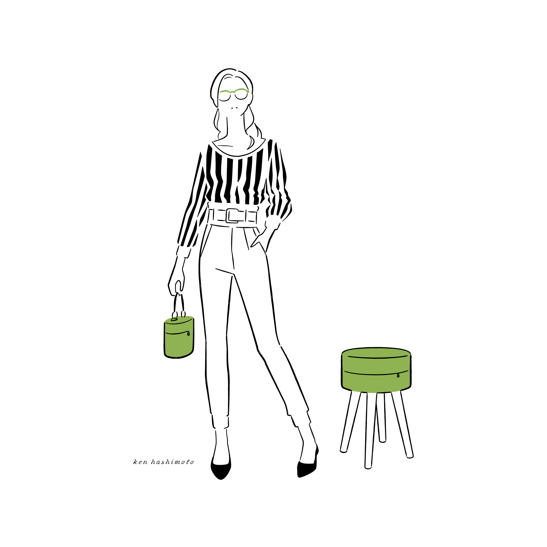 女性 / バッグ / スツール / ファッション / イラスト / メガネ