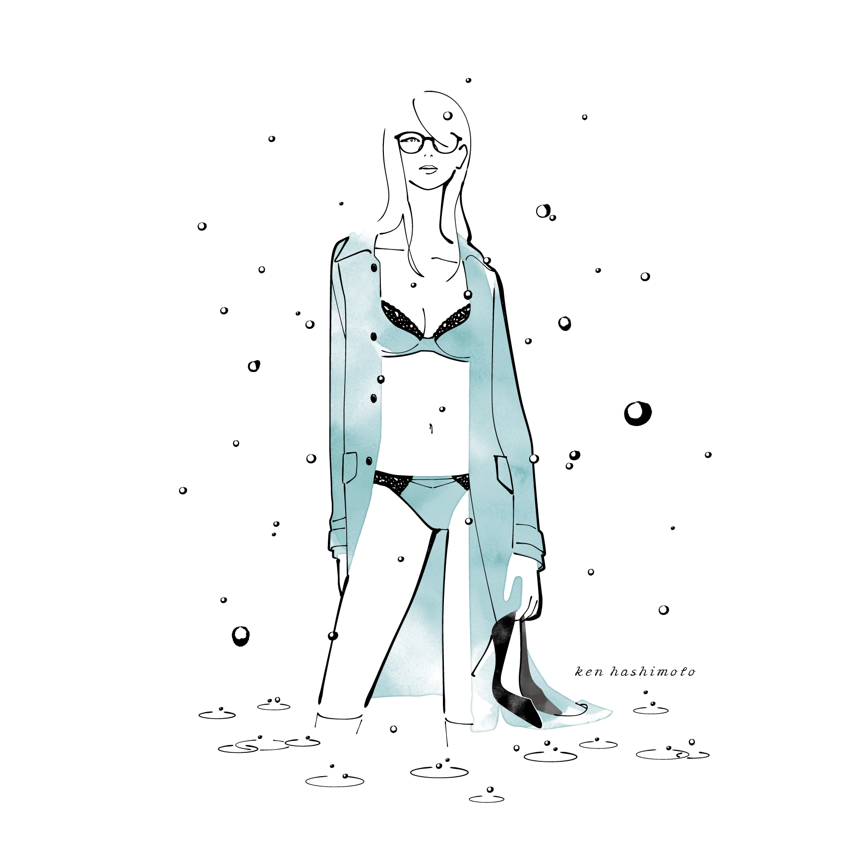 コート / 下着 / 女性 / 雨 / イラスト / ヒール / メガネ