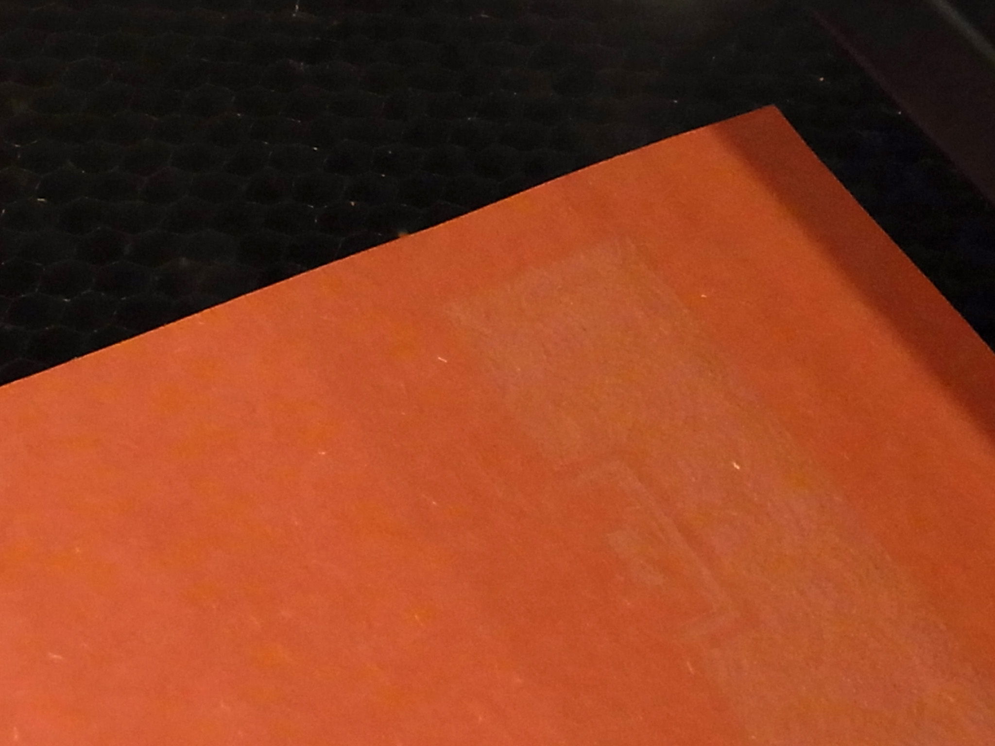 巻物型の和風クリスマスカード。レーザーカッターで模様とタイトルを彫刻しているところ。