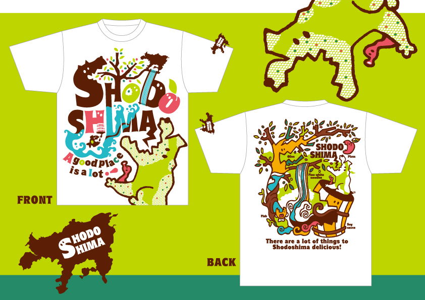 そんな小豆島をTシャツ全面にいっぱい詰め込みました。