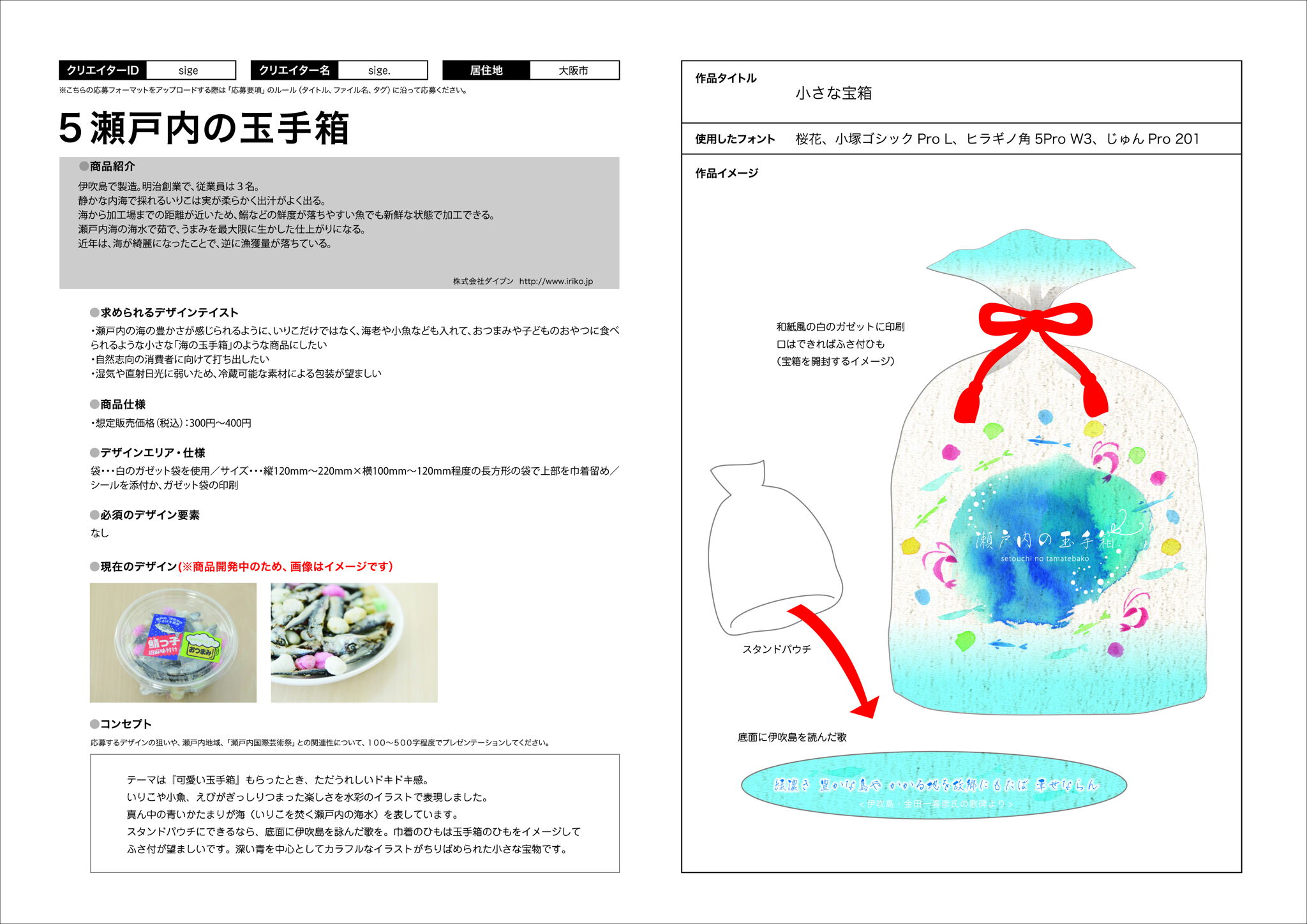 スタンドパウチにできるなら、底面に伊吹島を詠んだ歌を。巾着のひもは玉手箱のひもをイメージして