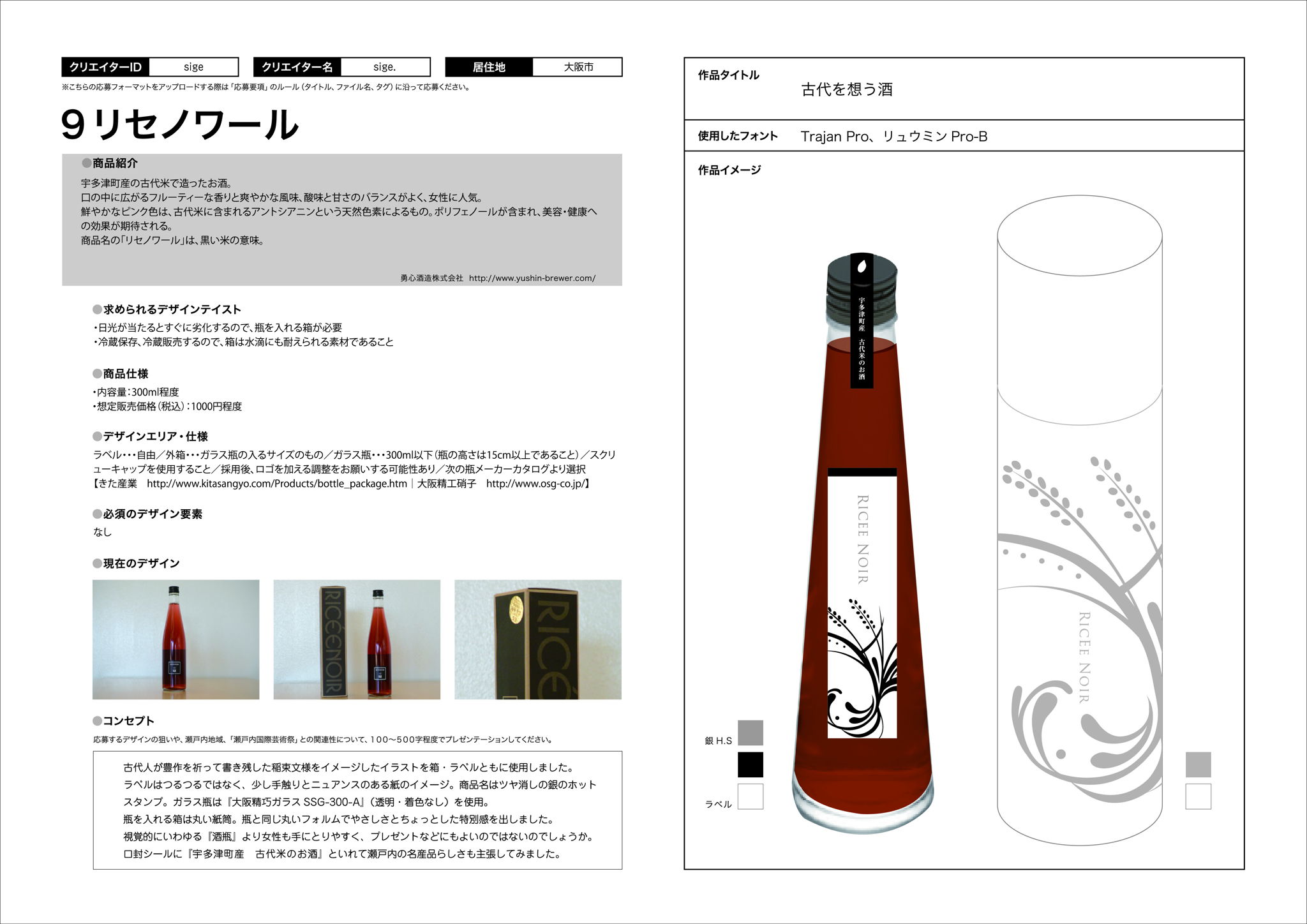 口封シールに『宇多津町産 古代米のお酒』といれて瀬戸内の名産品らしさも主張してみました。