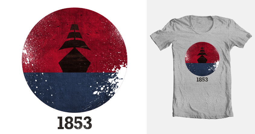 東洋と西洋の出会いから、歴史的な出会いを連想し1853年の黒船来航によって日本とアメリカが交流を持った場面を想像し制作。
