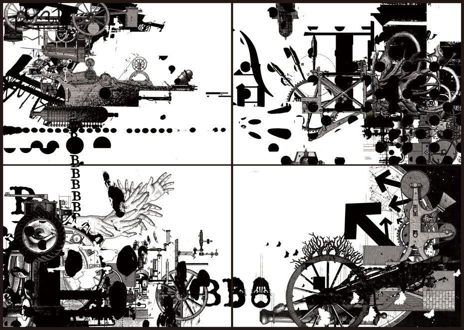 僕はコラージュで、4枚ひと組の絵を作ったんです。