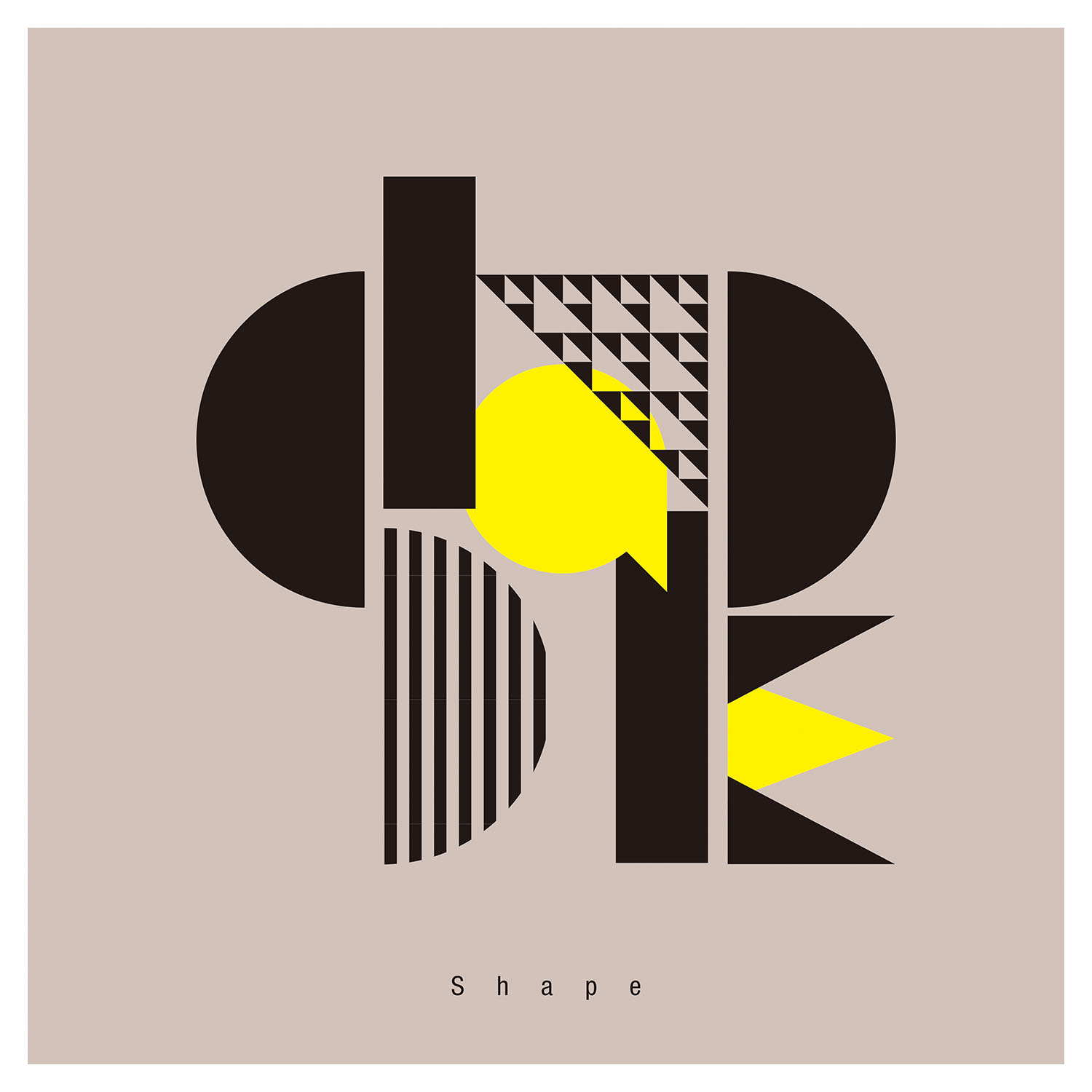 円・三角形・四角形という基本の図形を用いたタイポグラフィ。