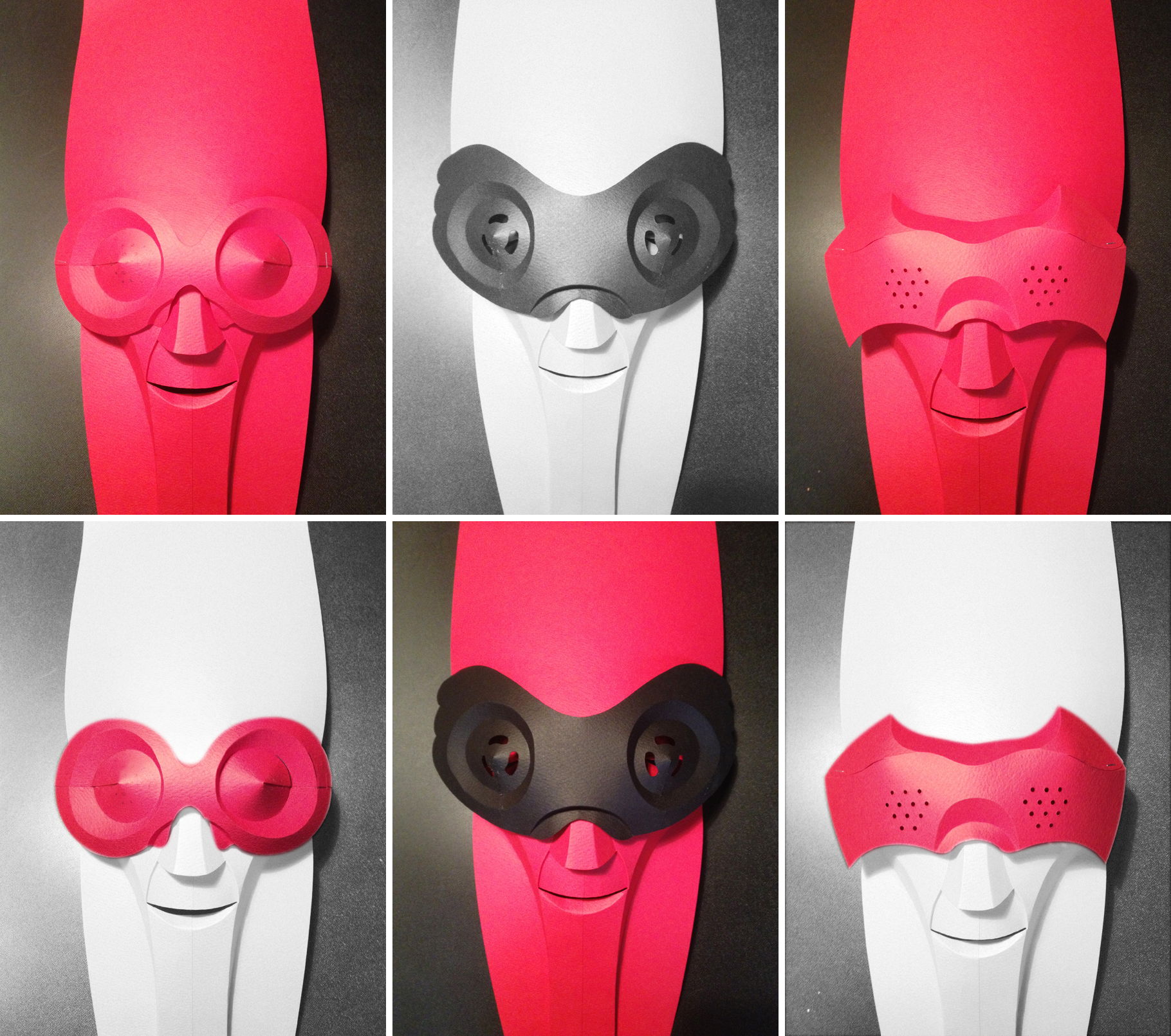 曲線折りのテクニックを使って制作したペーパーマスク。