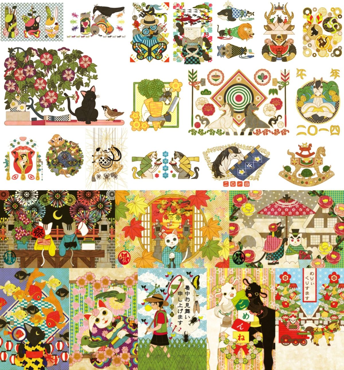 猫 虫 鳥 馬 午 午年 春夏秋冬 季節 和風 ポストカード