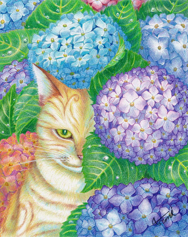 あじさいとねこ