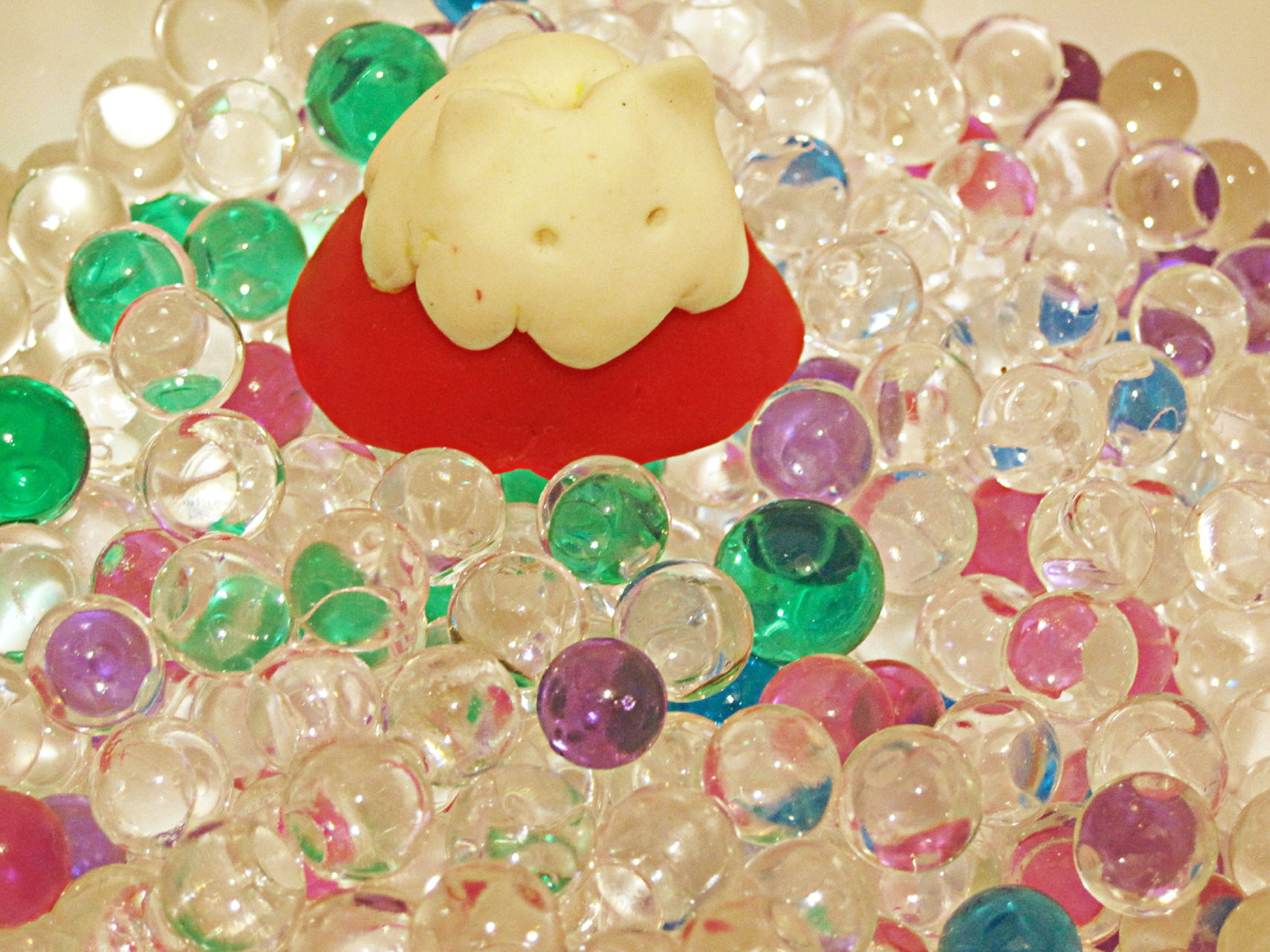 自然の恵みをたっぷり使用しているイメージをボトルに込めたくて傘の持ち手にボトルをあしらいました。