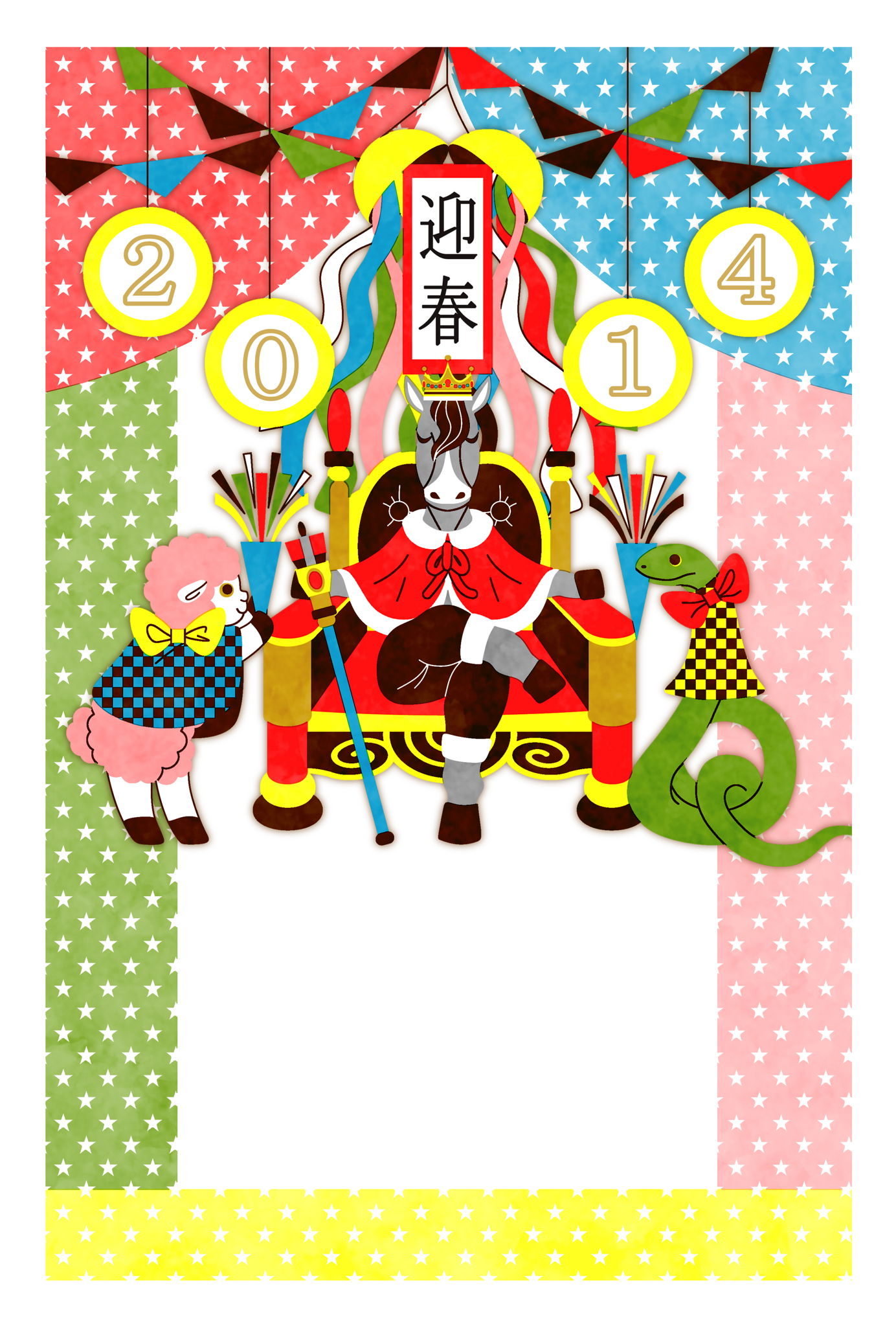 午年 午 馬 羊 蛇 かわいい イラスト デザイン テンプレート 年賀状