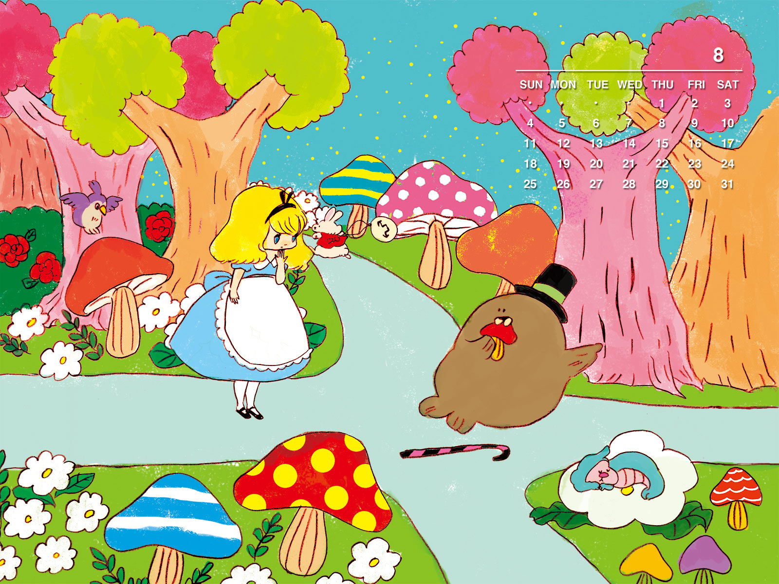 8月カレンダー アリス【1600×1200】