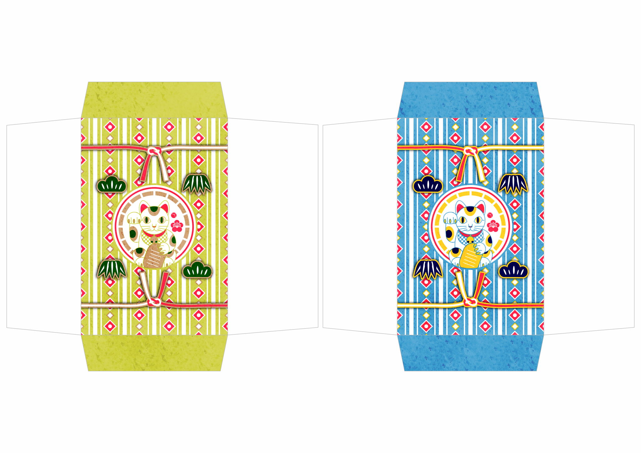 招き猫和風ぽち袋2種類セット(A4サイズ600dpi位)