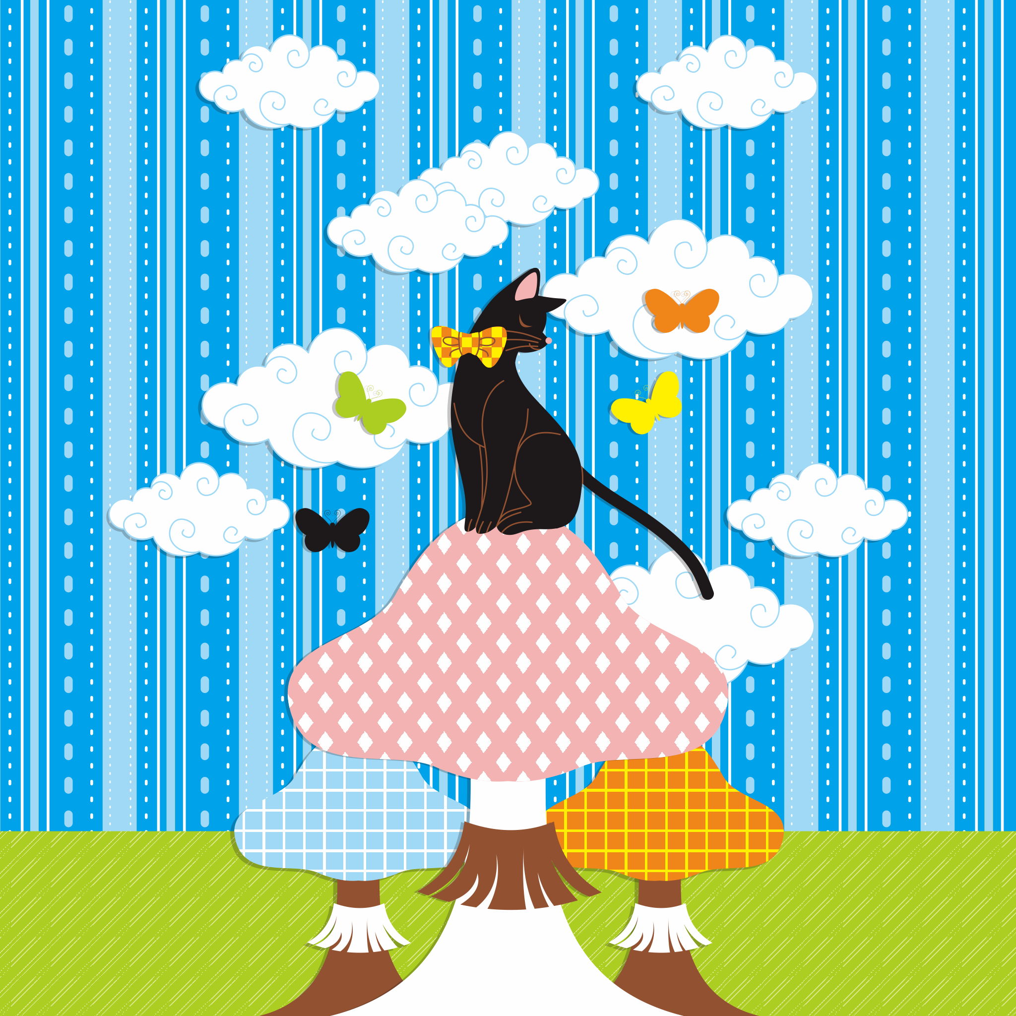 「猫とキノコと蝶」iPad用壁紙(Retinaディスプレイ対応2048×2048PNG)