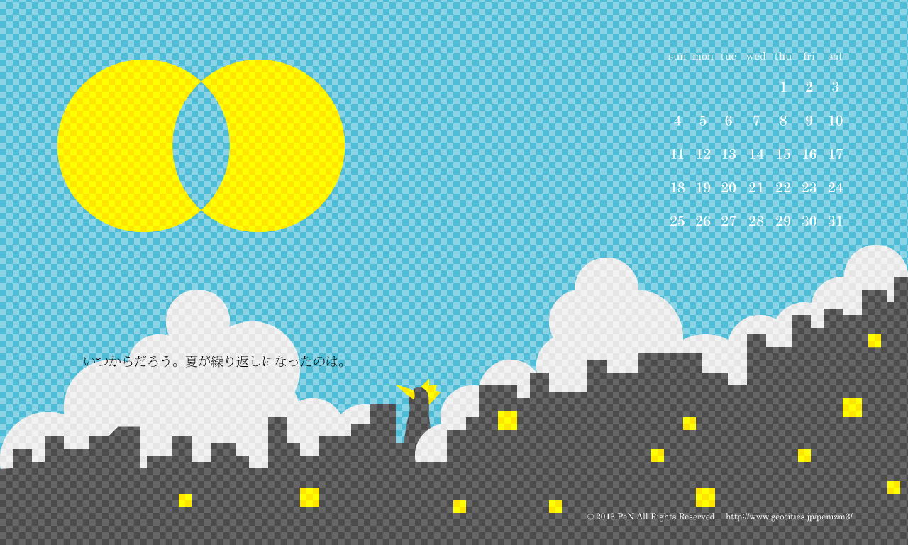 2013年8月壁紙カレンダーです。サイズは1280x768。