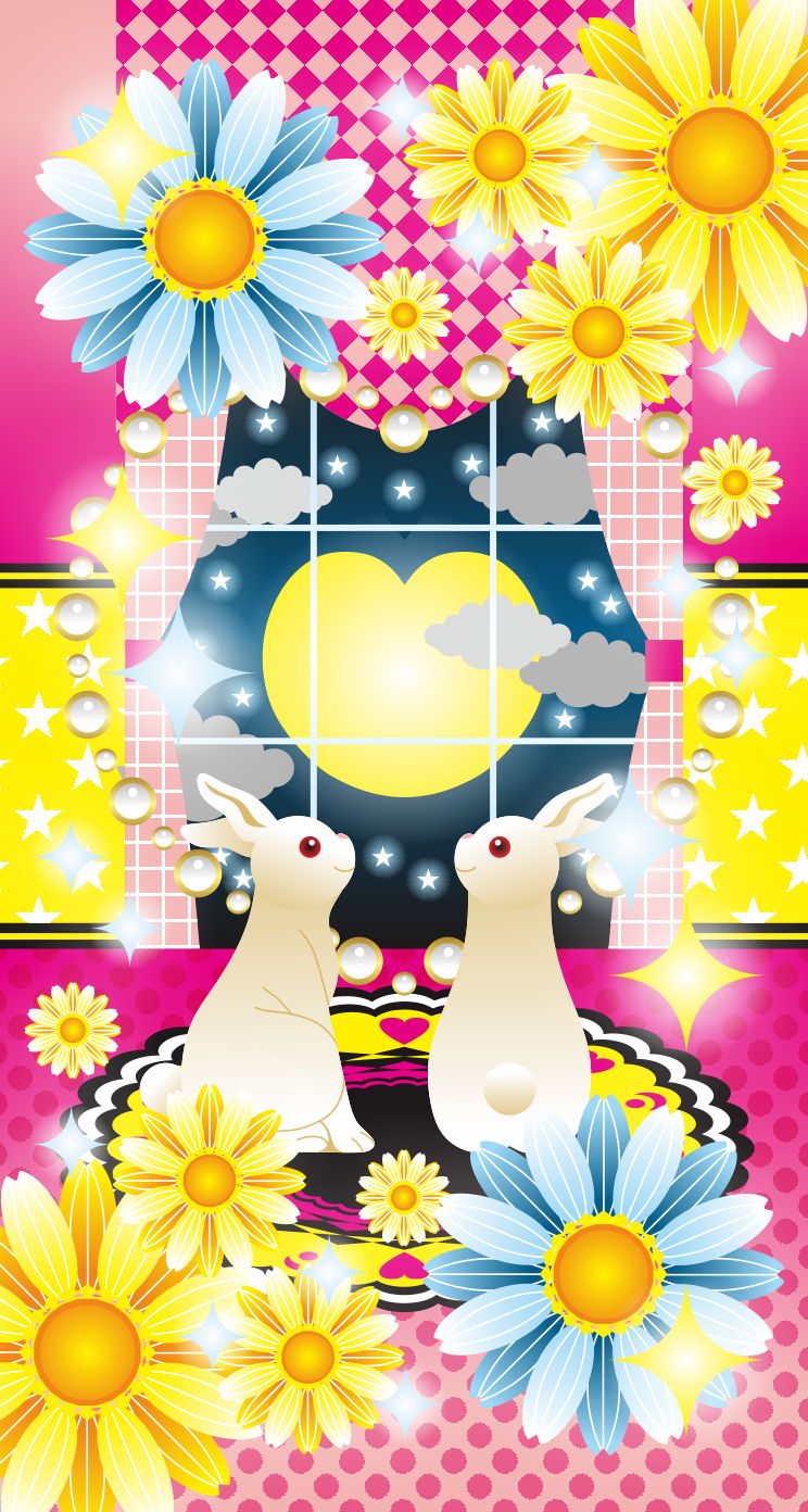 壁紙,うさぎ,ウサギ,兎,ハート,お月見,キラキラ,可愛い,iOS7,iPhone5,