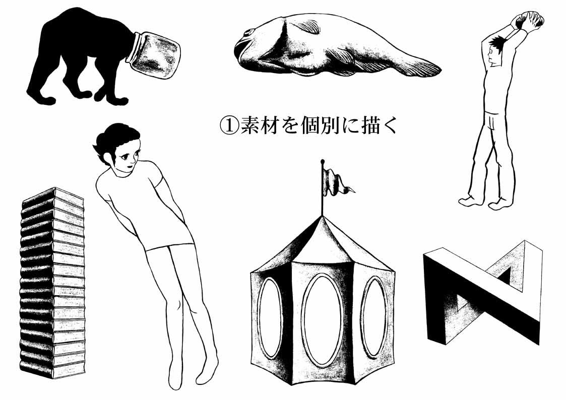 ケント紙に個別にモチーフを描き、PCに取り込む。