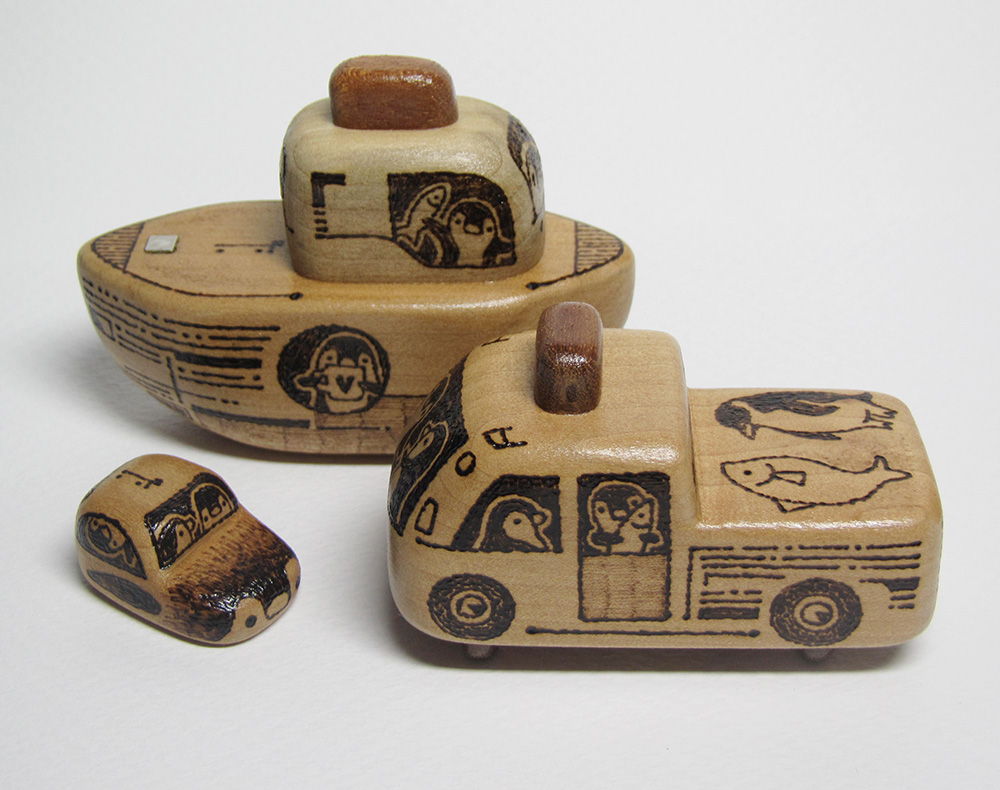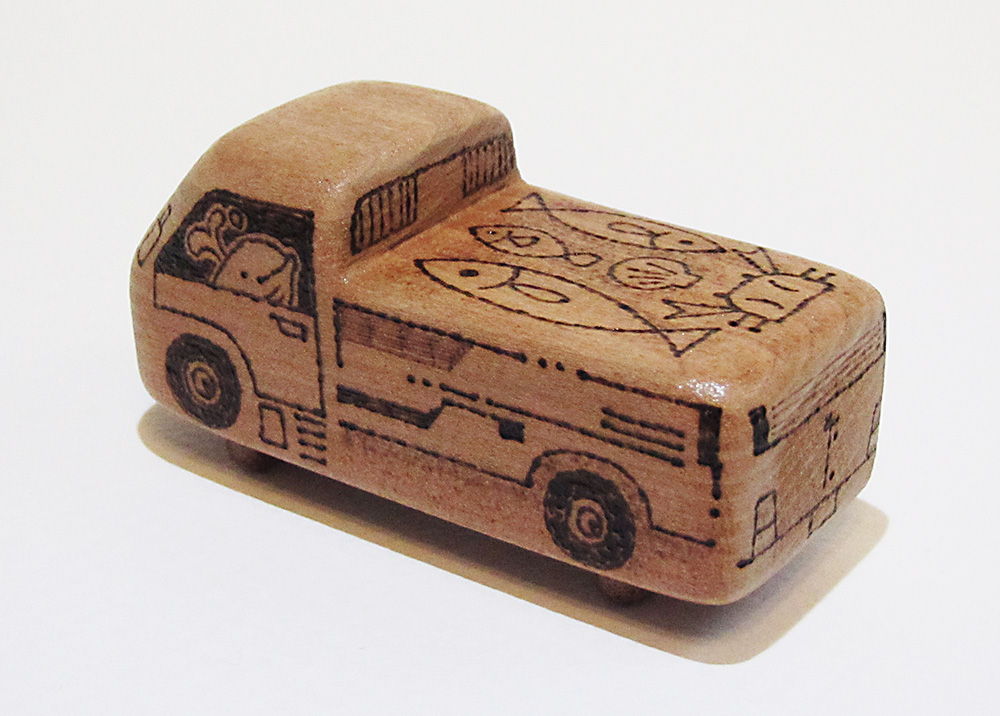 ウッドバーニング。桂材。ウレタンニス仕上げ。