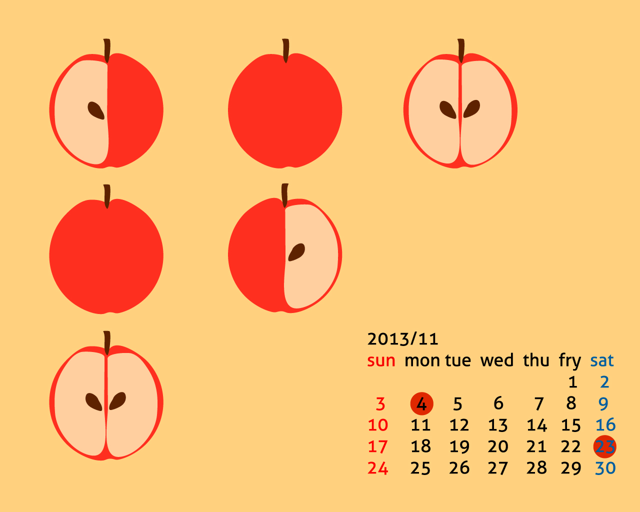 大好きなりんごモチーフで久々にカレンダー付きデスクトップ壁紙作りました。