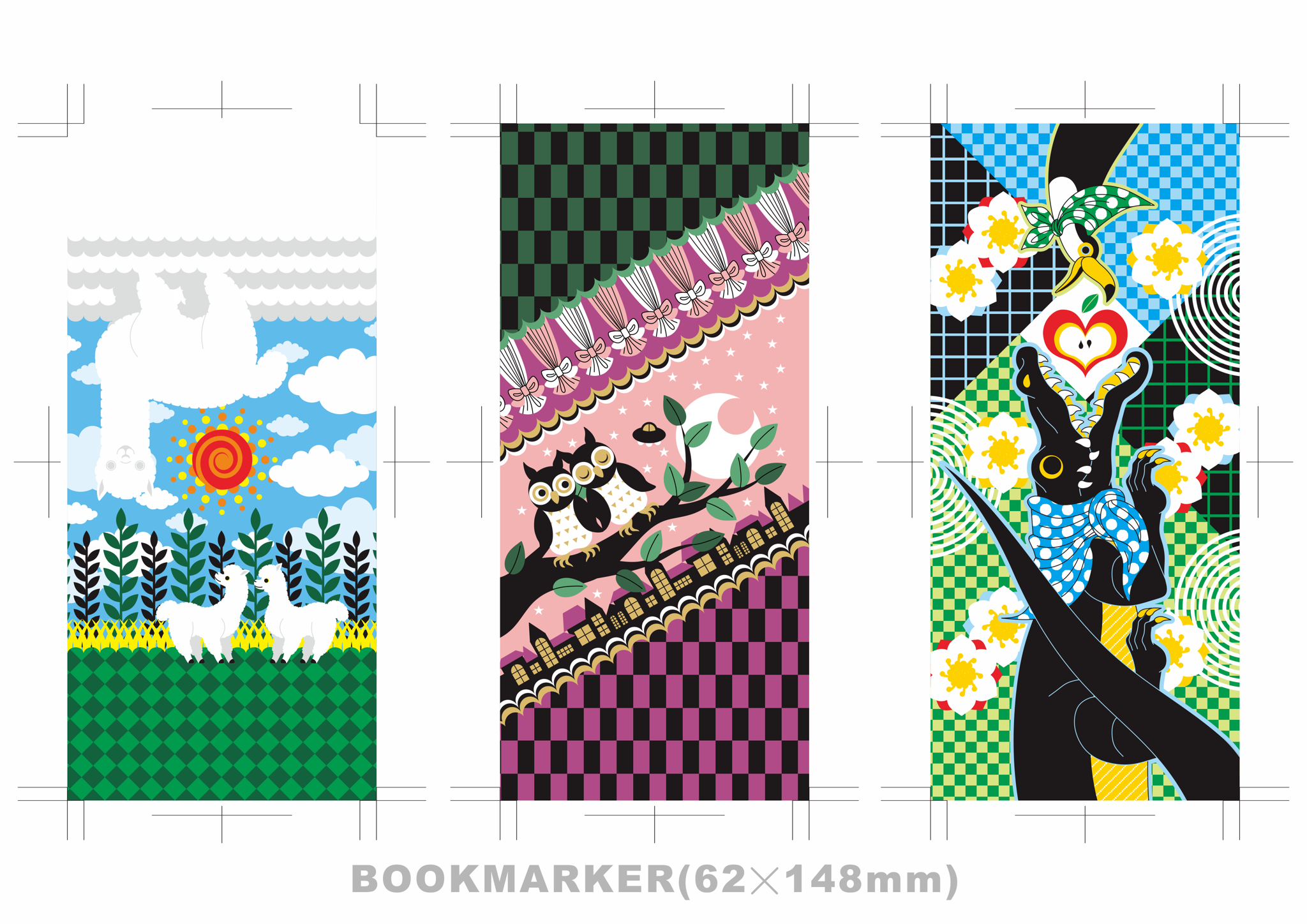 しおり3点セット(A4サイズ印刷用62×148mmPNG350dpi)アルパカ雲・夜景と梟・喰うか喰われるか喰わせるか