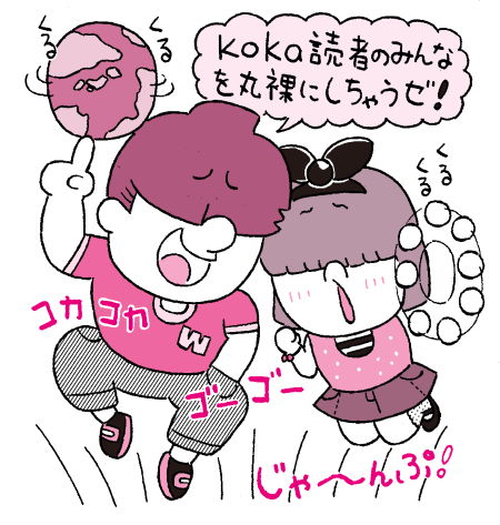 月刊「子供の科学」(略してコカ!)で描いた「わくおくん」と「わくみちゃん」です。読者アンケートからコカを読んでる子がどんな子かわくおくんとわくみちゃんが丸裸にしちゃいました。きゃ〜脱がさないで〜って、いやいやそういうことじゃなくてね!「わくみちゃん」は今回初登場のわくおくんの妹です。ちなみにわくおくんは今年やった「みんなが好きなコカキャラは?」という読者アンケートで4位だったので(「おしい!」って書いてあった!)来年は1位を目指してがんばるよ!今月号は、なんかホニャララを持ったすげぇやつが登場してるから良い子のみんなはチェケラッチョだよ!