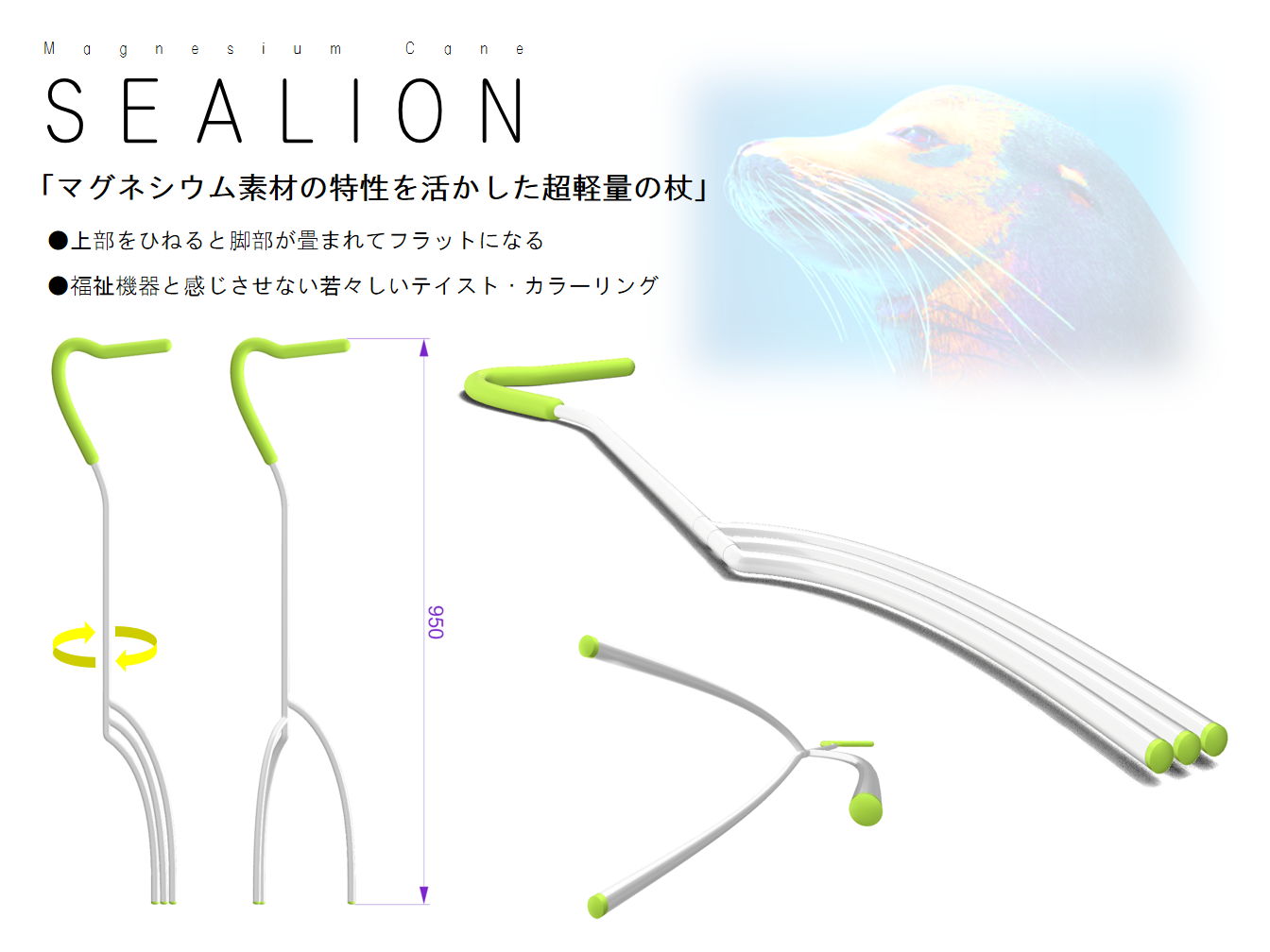 「マグネシウム素材の特性を活かした超軽量の杖」