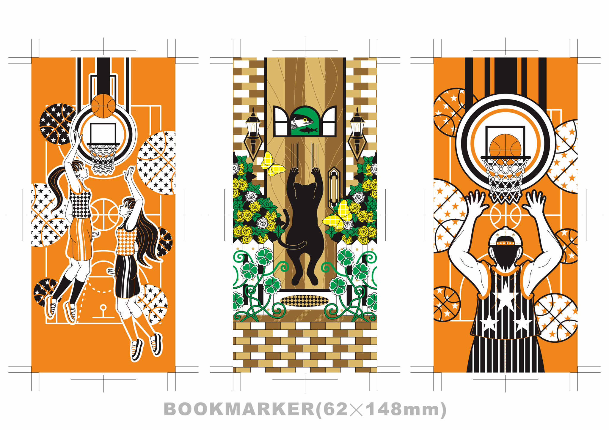 しおり3点セット(A4サイズ印刷用62×148mmPNG350dpi)バスケットボール女子・未知への扉・バスケットボール男子