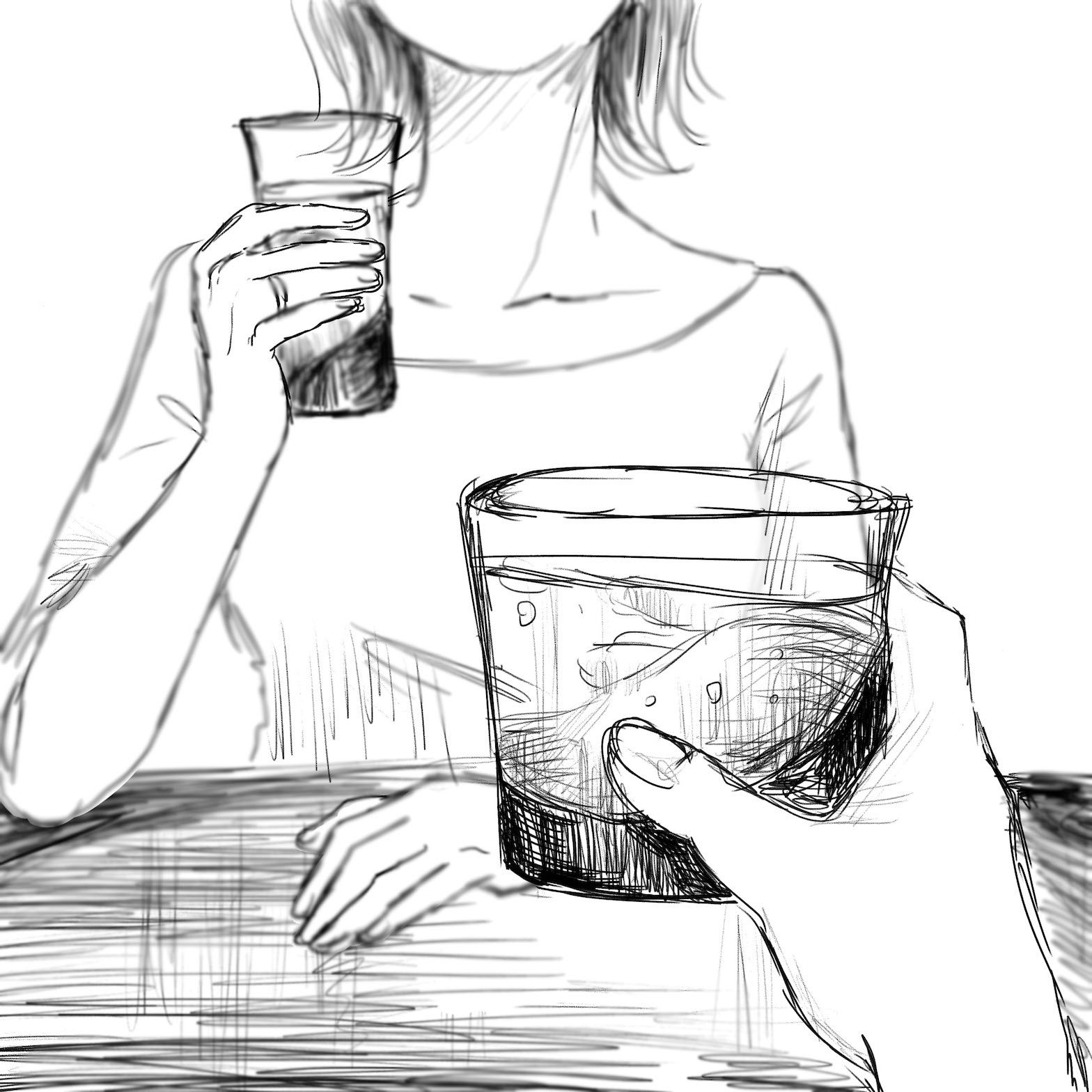 飲み物を飲むときに、口の周りやガラスで透ける肌は見せたくない。まわりから見えにくい、且つあまり重い印象を受けない程度の面積のアートスチールで覆う。人の目線が気にならずおしゃれに使えることで、コミュニケーションを円滑に図ることができる。