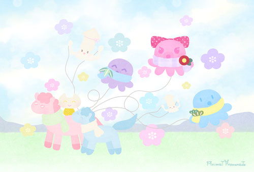 同じイラストで壁紙やポストカード等作ってみましたので、