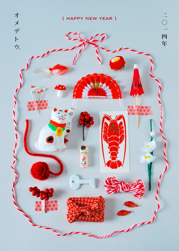 年賀状。紅白の小さなものを集めてみました。