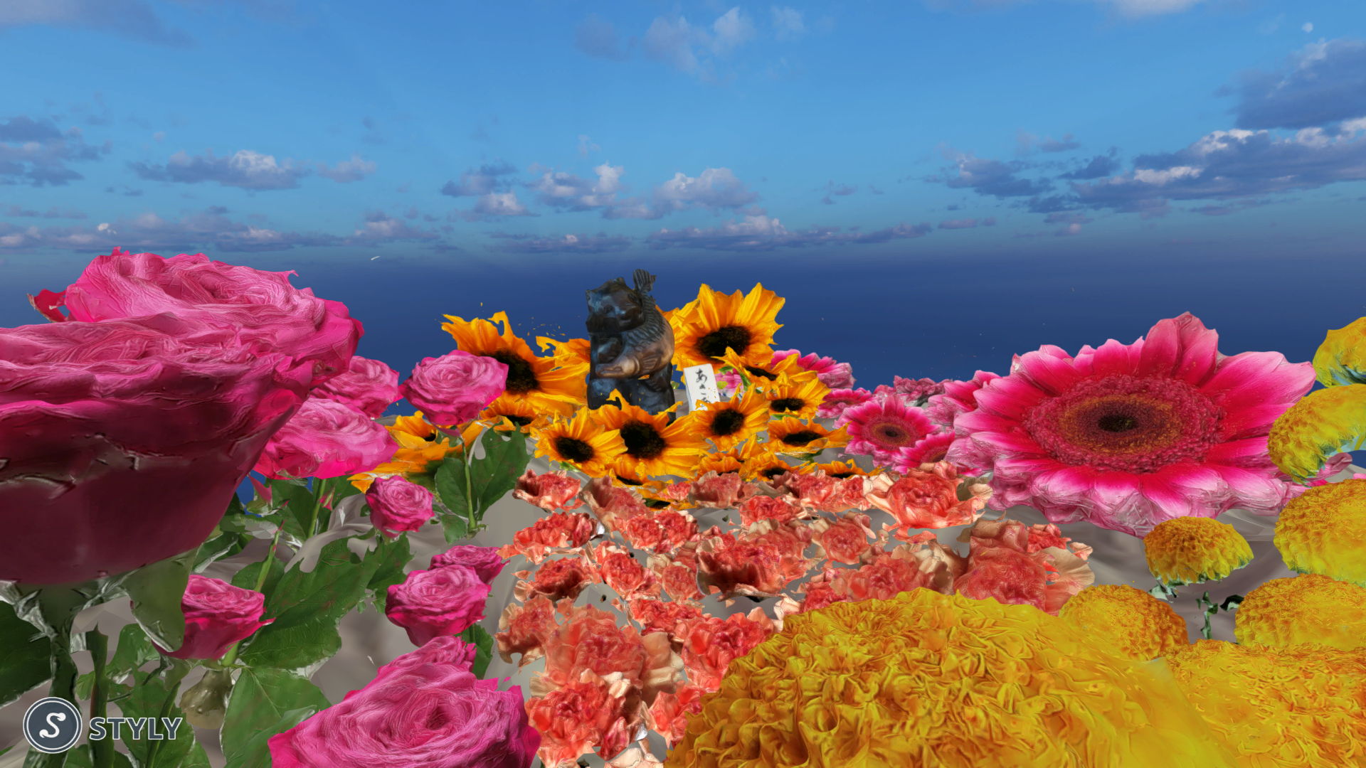 With VR and photogrammetry, I didn't need to kill or purchase many flowers for this flower arrangement. Using as many flowers as possible has been my daydream for 20 years since I started learning Ikebana, a Japanese-style of flower arrangement.