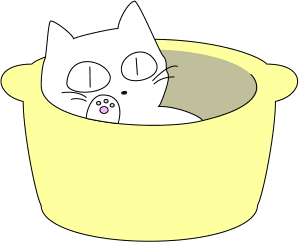 鍋の中で寛ぐ猫のアニメーションGIFです。