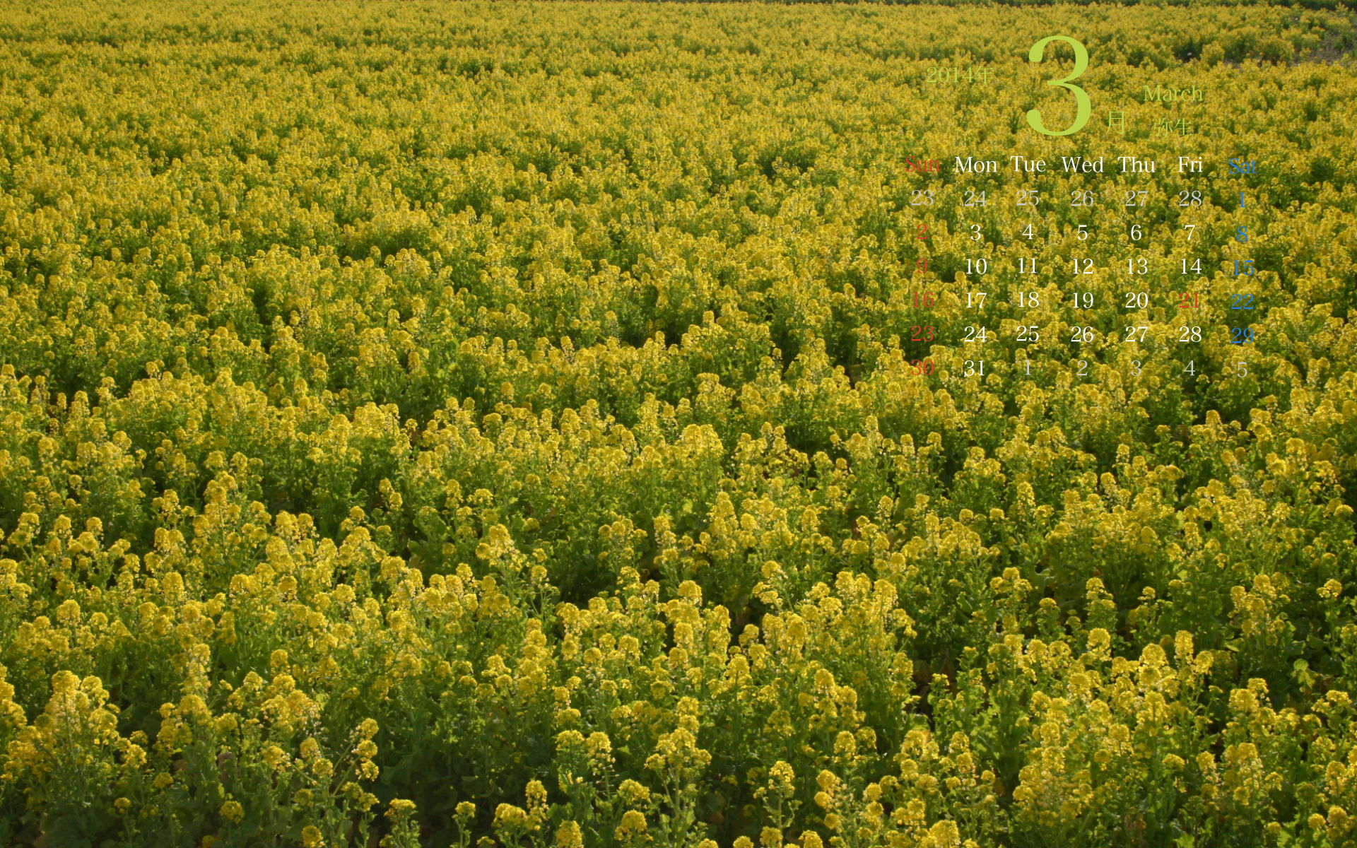 2014年3月PC壁紙カレンダー2(1920×1200)です。