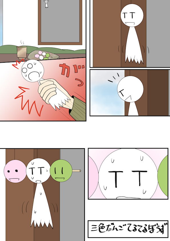 今日のスケッチ709「三色だんごてるてるぼうず」