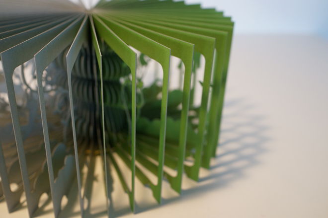 Finally, each sections are used as pages of the book. With this system, everyone who opens the book can enjoy it and is surprised by the dramatic transformation