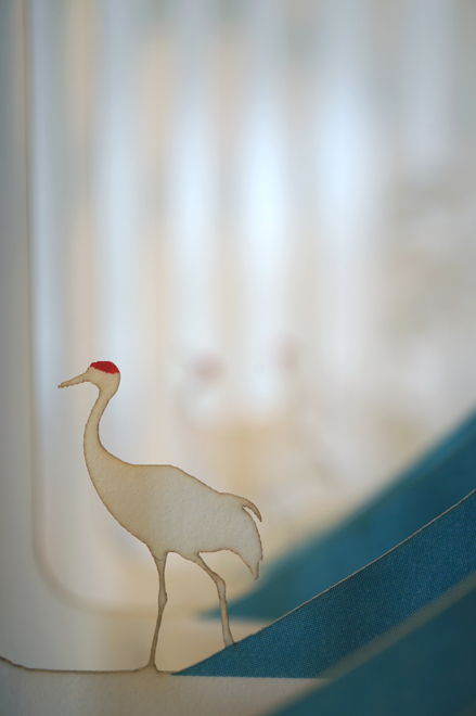 ページを一枚一枚レーザーカットして、360°開くと立体ジオラマが現れる絵本「360°Book」。雄大な富士山、雲そして鶴たちが日本の美を醸し出します。