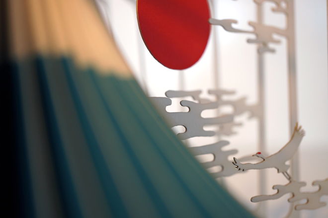 ページを一枚一枚レーザーカットして、360°開くと立体ジオラマが現れる絵本「360°Book」。雄大な富士山、雲そして鶴たちが日本の美を醸し出します。