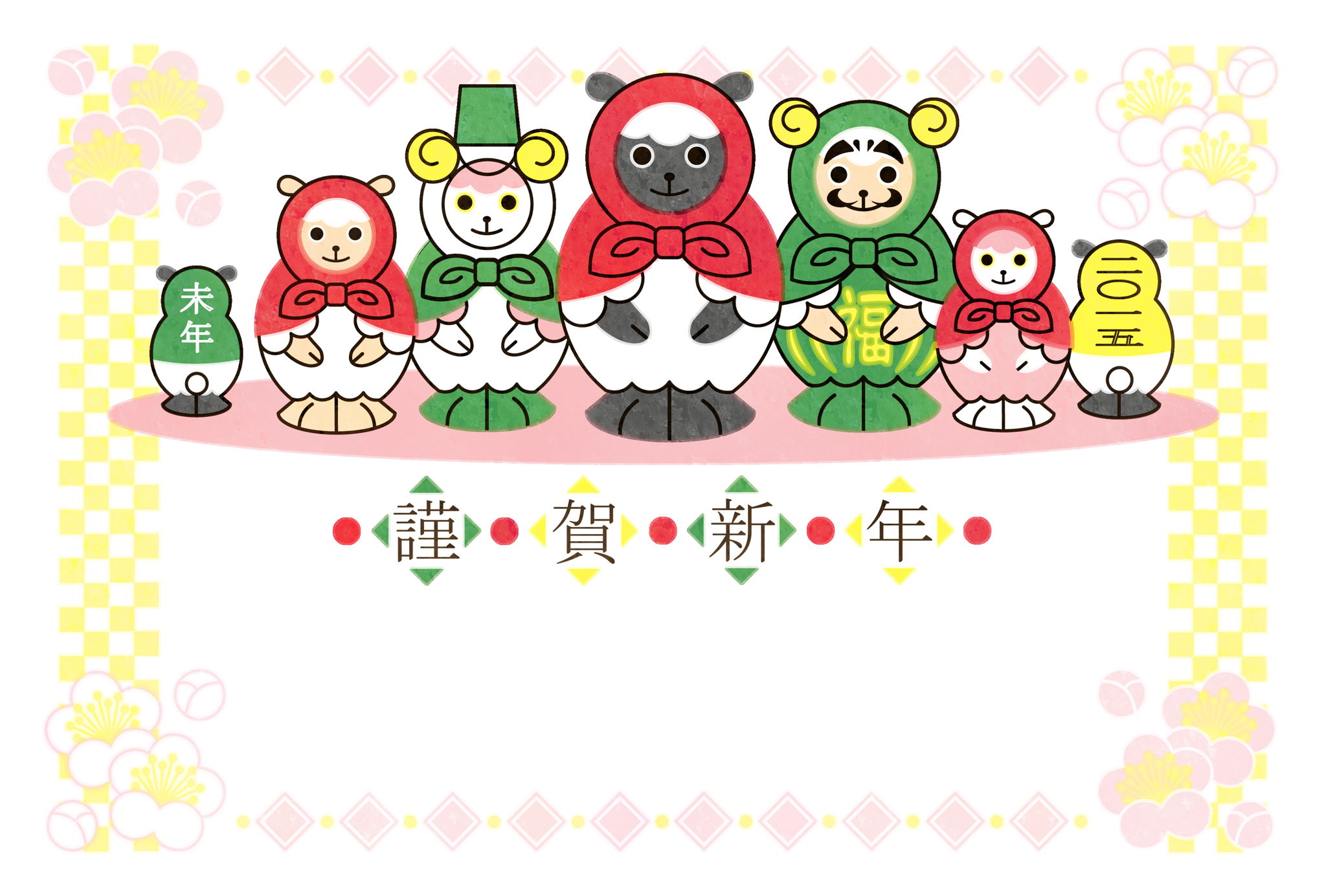 2015年,未年,年賀状,テンプレート,和風,マトリョーシカ,羊,イラスト,デザイン,かわいい,
