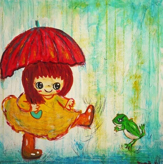このカエルは女の子と遊ぼうとしているのでしょうか。