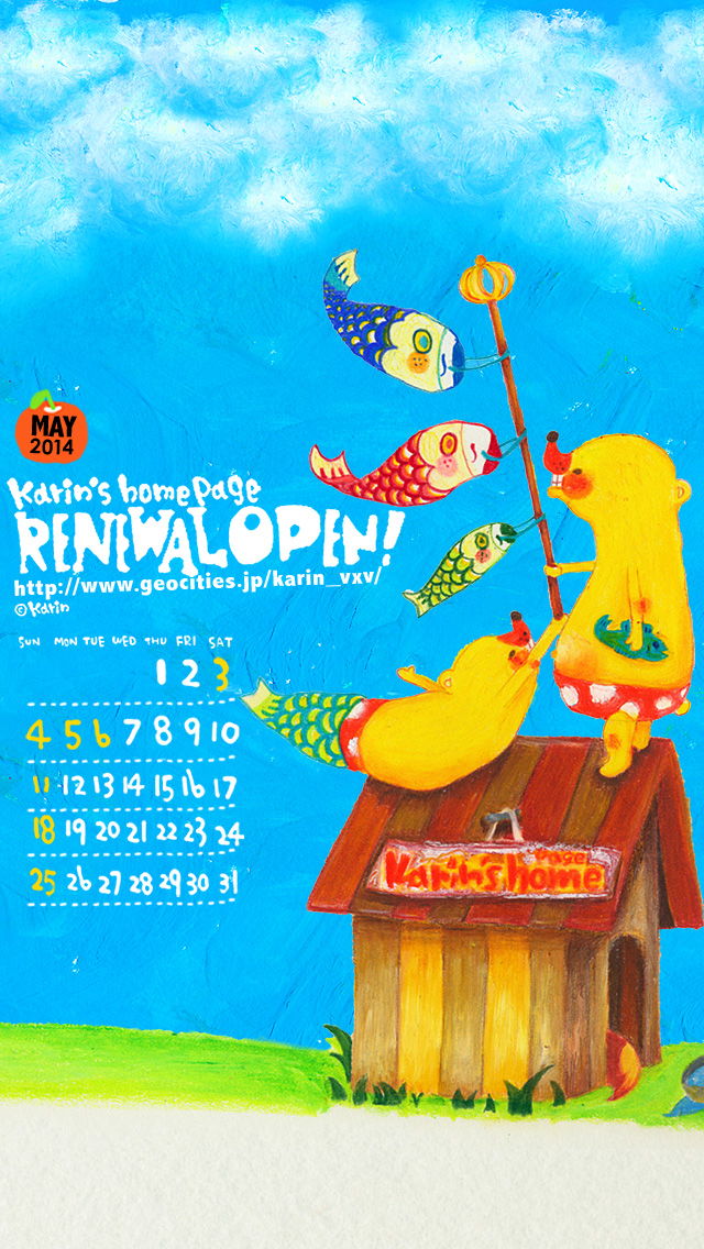 2014.5月 スマートフォン用カベガミ(A)「屋根より高いこいのぼり、uhyo」