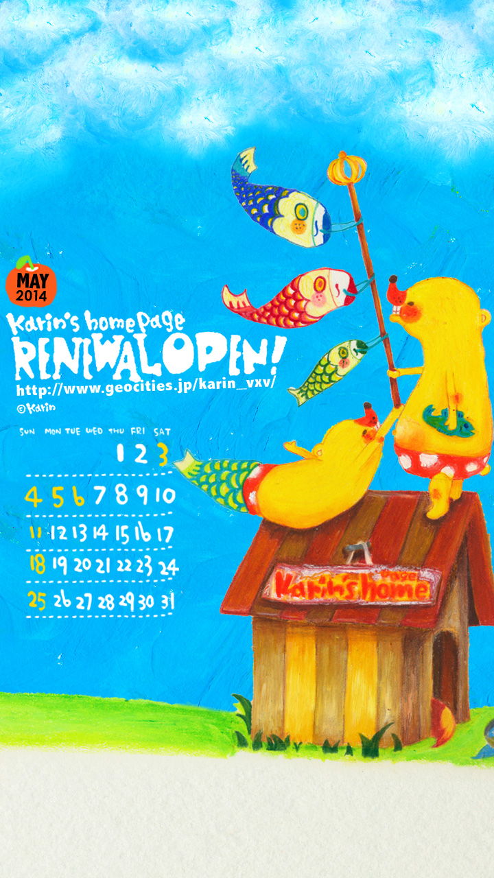 2014.5月 スマートフォン用カベガミ(B)「屋根より高いこいのぼり、uhyo」