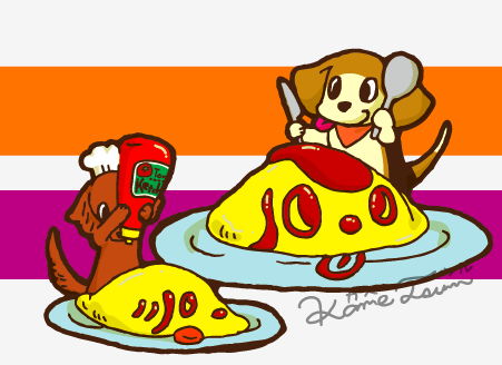 愛犬のラナ(Miniature Dachshund ♀16)とペコ(beagle ♀ 14)の食べ物のイラストです。